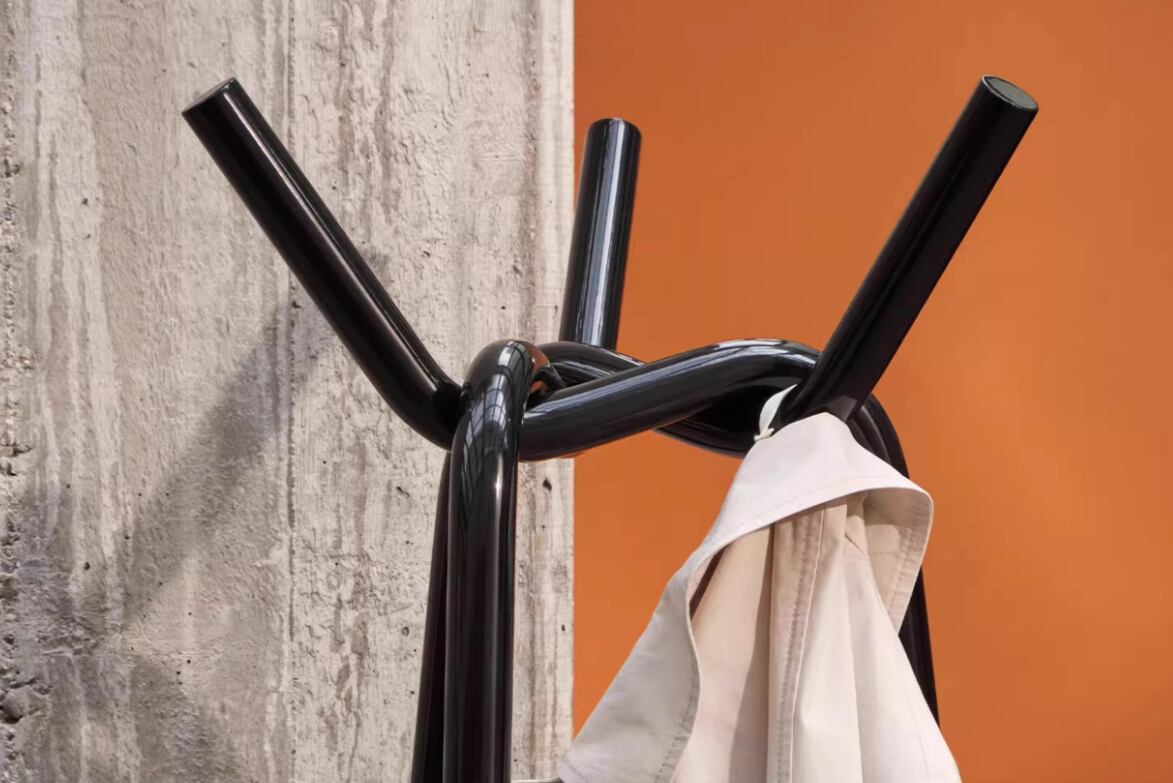 日本人デザイナー、倉本 仁がデザインしたシンプルで象徴的なコートラックKNITは、ユニークな彫刻的デザインが特徴です。